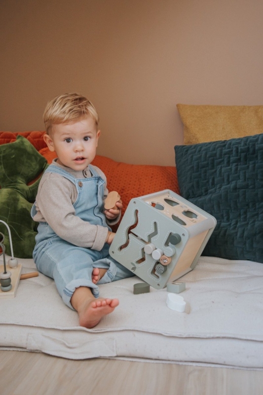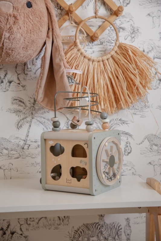De activiteitenkubus heeft aan elke kant een andere activiteit, die naast uren speelplezier ook bijdragen aan de ontwikkeling van jouw kindje.