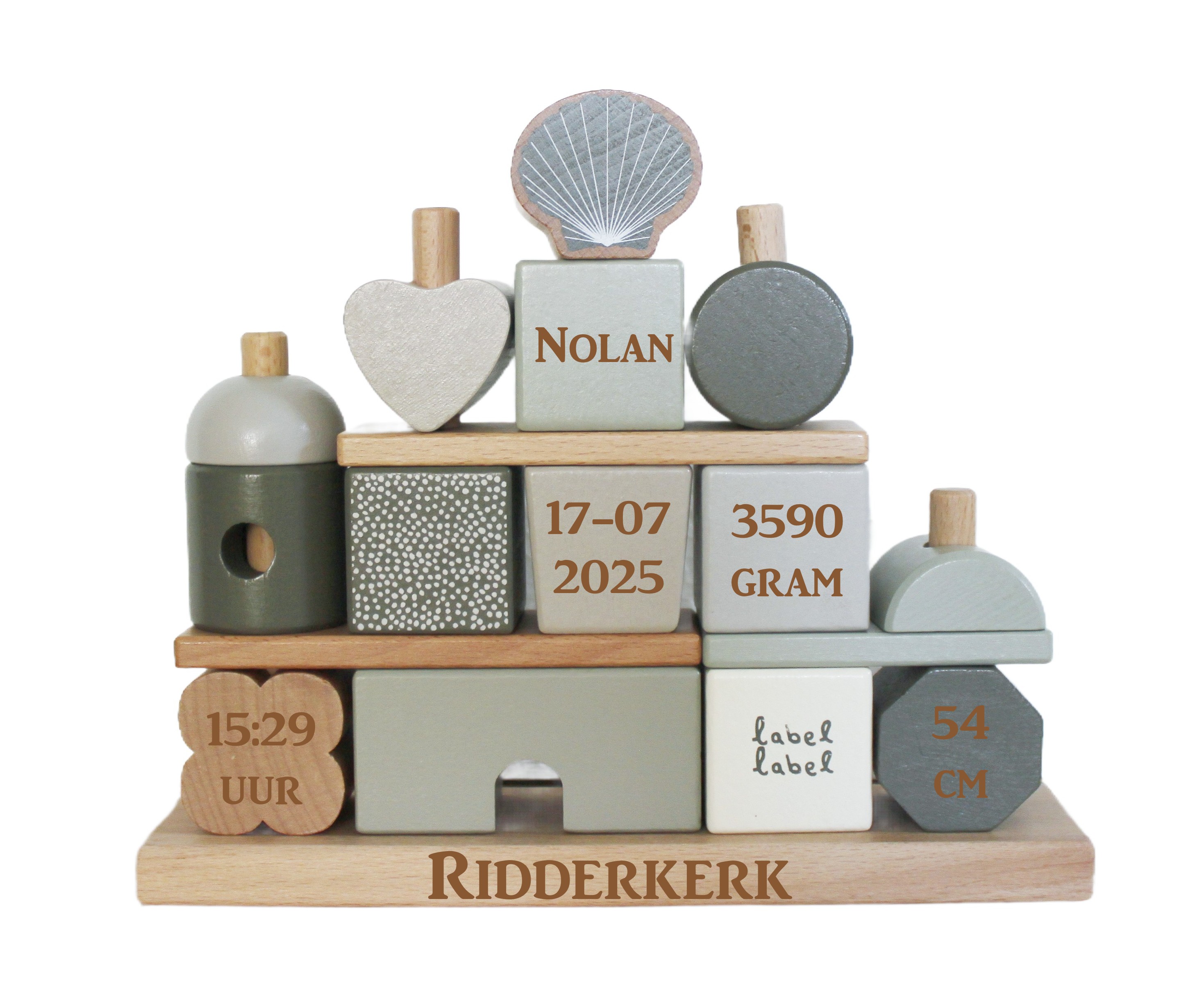 Artikelnummer: 1225 OverzichtGeef dit leuke stapelhuisje als kraamcadeau aan de kers verse ouders met alle geboortegegevens van hun kleine wondertje erin gegraveerd.