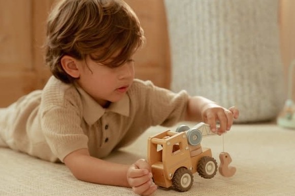 - De kraanwagen voorzien wij van naam doormiddel van gravering, zo kan je kindje er veilig mee spelen.