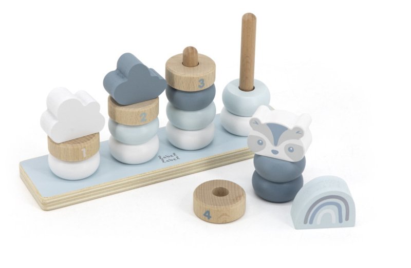 Artikelnummer: 1219 OverzichtVan stapelen, tellen en sorteren tot fantasierijke verhaaltjes over regenbogen en wasbeer, wat zal je kleintje heerlijk kunnen spelen met deze superleuke houten stapelringen van Label Label!