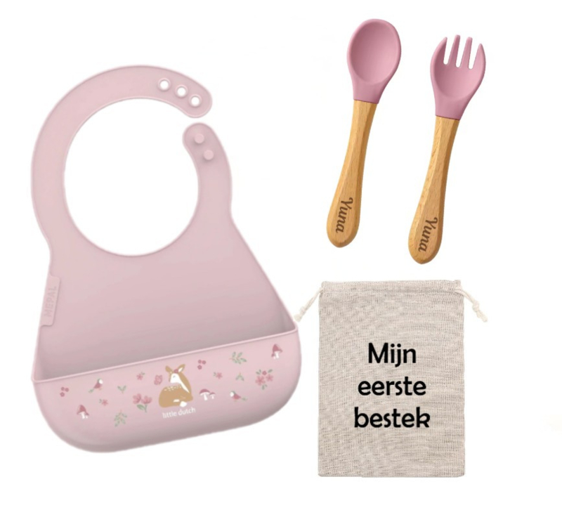 Little Dutch Siliconen Slab & Bestek roze met of zonder naam
