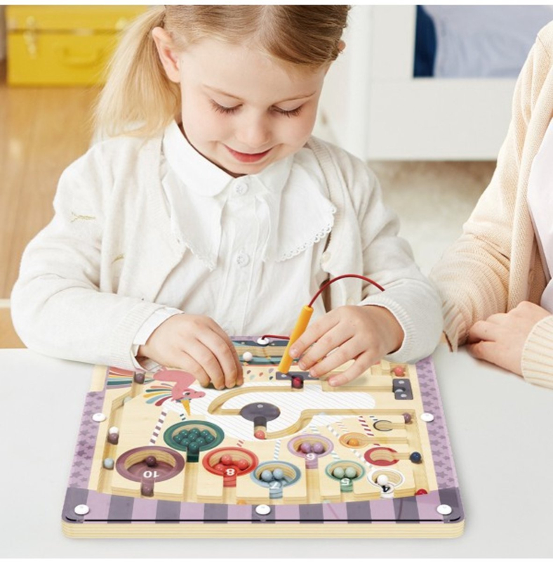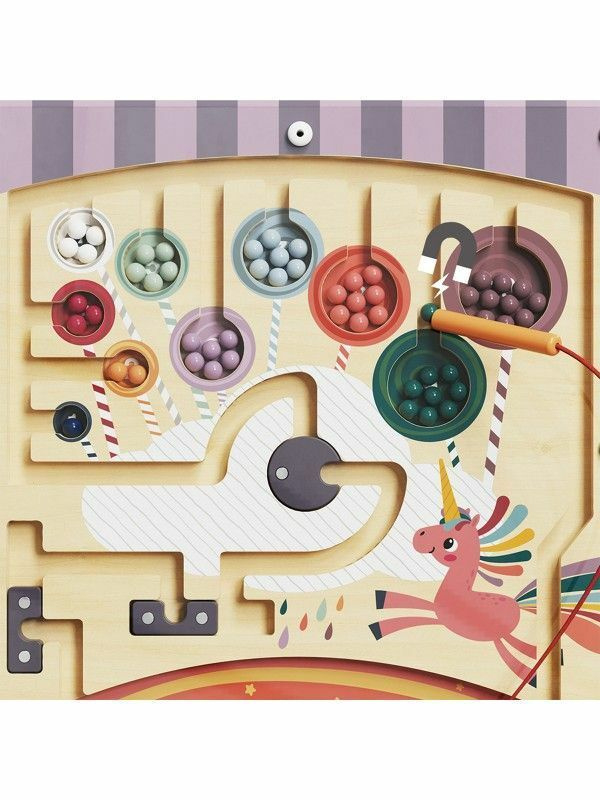 Met het bijgeleverde magnetische pennetje kunnen kinderen kraaltjes door een sprookjesachtige eenhoornwereld leiden, waarbij ze spelenderwijs leren tellen en kleuren herkennen.