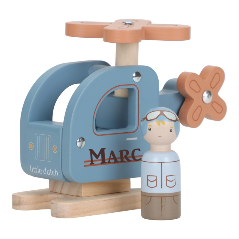Artikelnummer: 12201 OverzichtVlieg samen op avontuur met deze houten helikopter in zachte blauwe tinten.