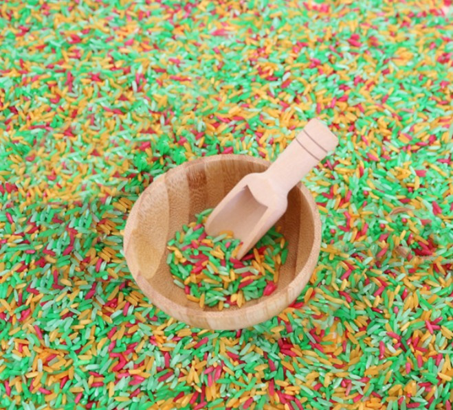 Een mooie aanvulling voor in de houten speelbakken in combinatie met rijst. Of samen met de houten schepjes!