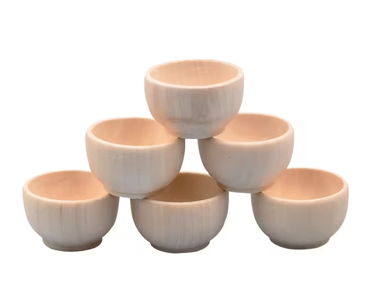 Het houten kommetje heeft een afmeting van 6 x 3 cm