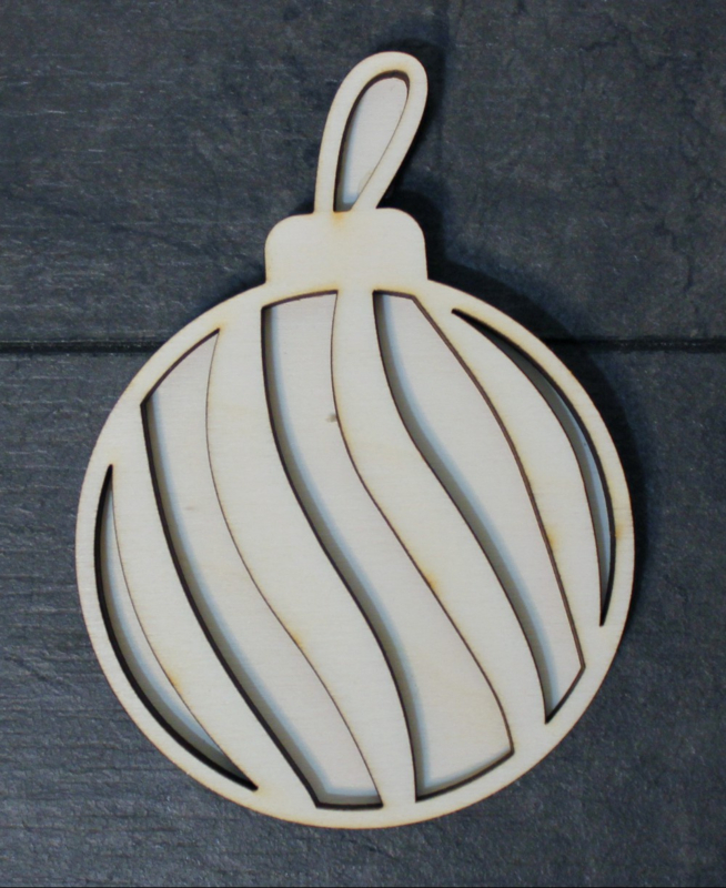 De kerstbal is gemaakt van populieren hout en verkrijgbaar in 2 maten: