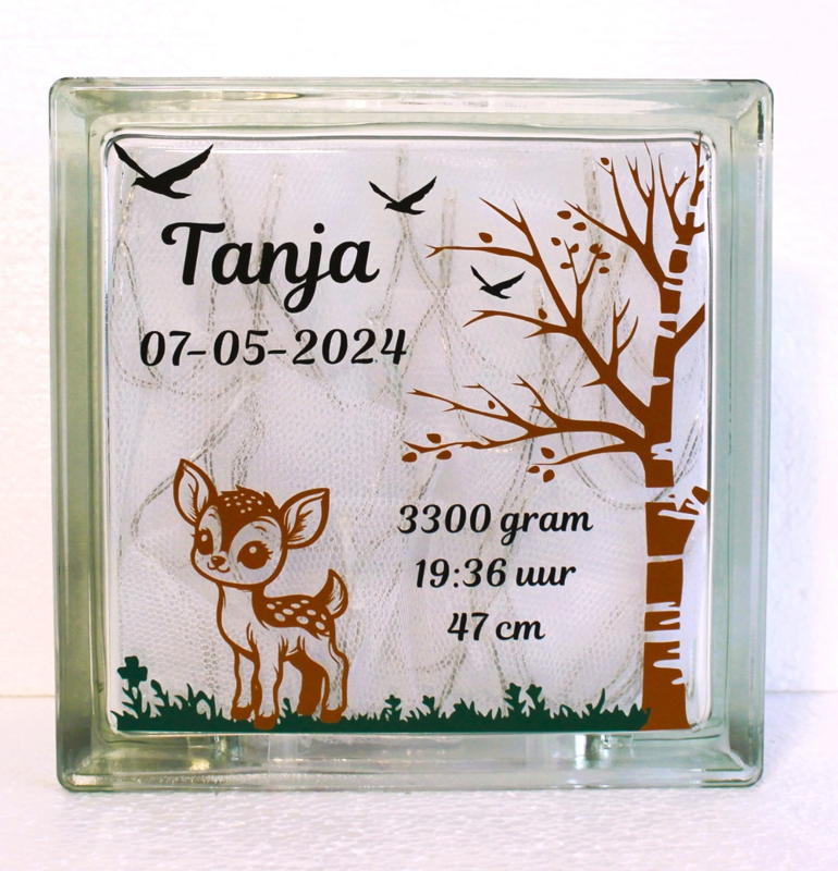 Artikelnummer: 11748 OverzichtDit glazen geboorteblok met verlichting is de hit van dit jaar!!
